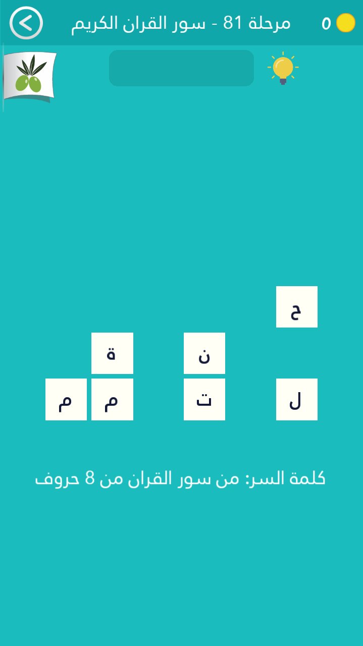 من سور القران من 8 حروف كلمة السر مرحلة 81 سور القران الكريم المصدر