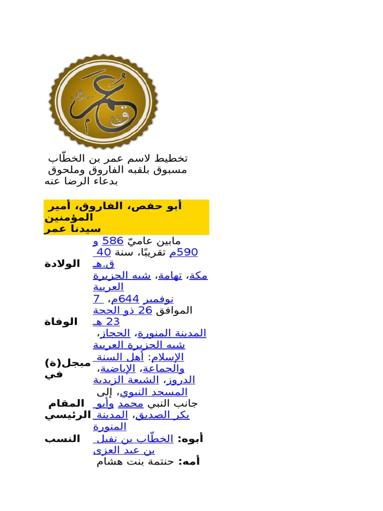 نسب عمر بن الخطاب ابجديه Abjadih