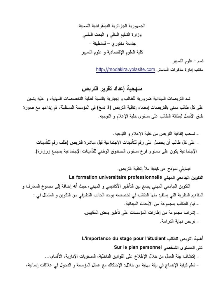Pdf منهجية إعداد تقرير التربص Harkat Bensliman Academia Edu